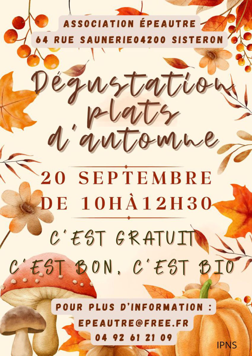 Pour tout renseignement et réservation : 04 92 61 21 09 / epeautre@free.fr